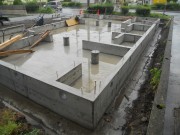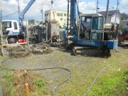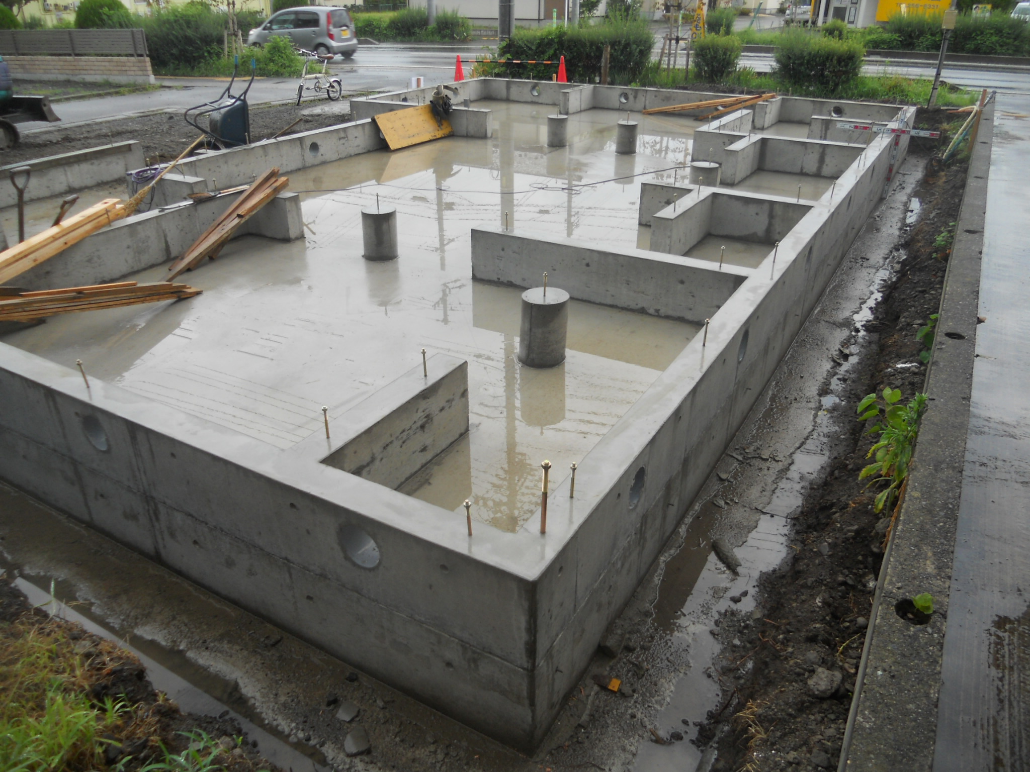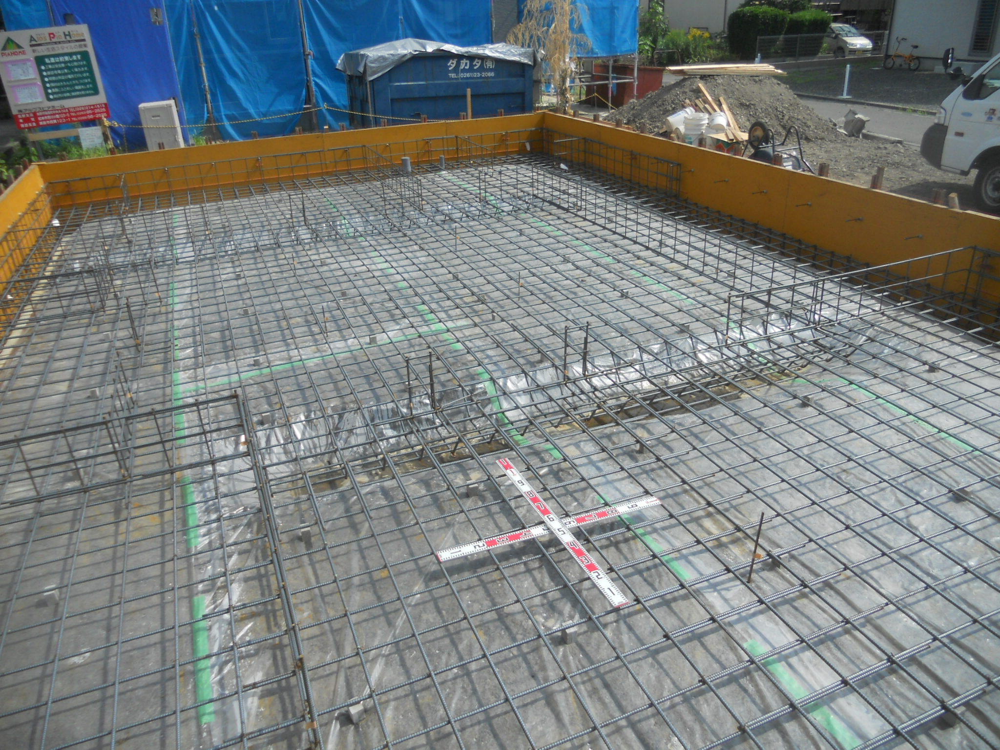 地盤改良 (7・13) 鉄筋組み立て完了(7・23) 基礎工事完成(7・28)
