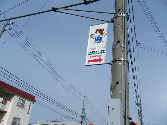 ヤマワリビングは事務所が住宅街の中なので、通りに電柱看板を設置しました。 中越の信号の交差点を運動公園方面に向かって右側です。 大きなヤマワのキャラクターのくまちゃんが目印です。これでだいぶわかりやすくなりました。 これからお施主様が打ち合わせにご来店する事が多くなると思いますので、役に立ってくれる 事でしょう♡ 近くを通りかかっってくまちゃんを見たら、ヤマワリビングを覚えてくださいね。