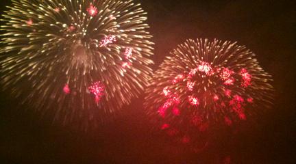 約15,000発を海上の防波堤(?)からかな、絶え間なく打ち上げる迫力に、なぜか笑いが止まらなくなってしまいました。夏満喫です♪