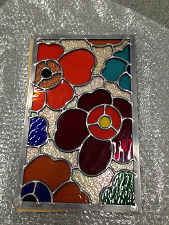 これは、現在建築中の吉田T様邸のトイレのドアに付ける予定のステンドグラスです。 奥様がデザインされて、作家さんに制作してもらったそうです。オレンジ色が映えてとても素敵です。 何か一つ手作りのものを入れると、ますます愛着が湧きます。せっかくの新築ですから、個性を出してみるのもいいですね。