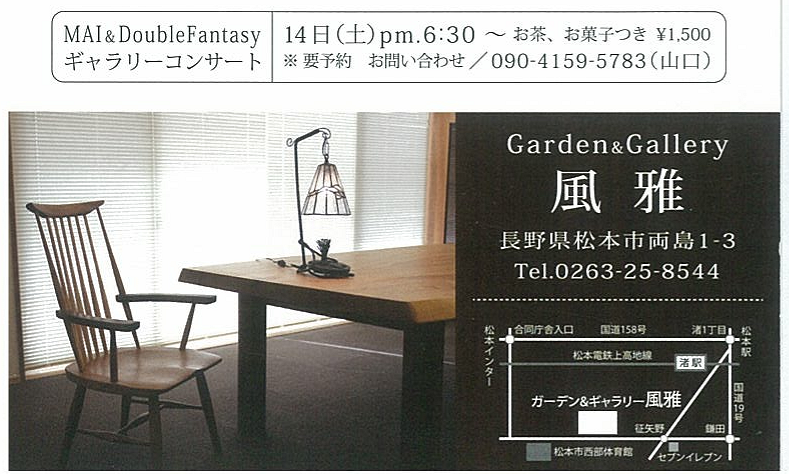私が習っているレザーの先生の娘さんMAIさんのコンサートが松本であります。