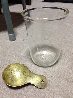 大きめのビールグラスと、他の作家さんの金属製のスプーンが戦利品です。
