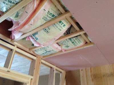 ピンク色の内装下地材はハイクリンボードといって、有害物質を吸着・分解する高性能なものを使用しています。 ヤマワの材料は有害物質の元となるような材料は、ほとんど使用していませんが採用させていただいています。