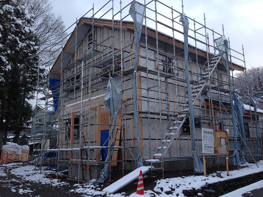 まずは前回建前の途中だった中越U様邸。もう屋根も完成しています。