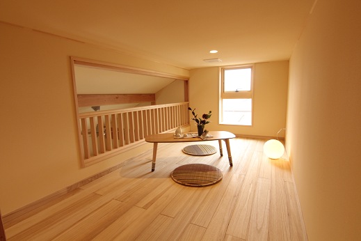 廻りの家々の屋根が眼下に見える3Fの小屋裏。ご来場いただいた皆様から褒めていただけました。