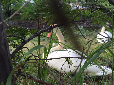 松本城にはハクチョウが草むらに座っていました。