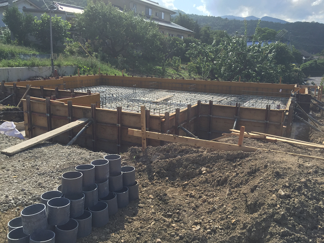 地鎮祭の時にいただいた鎮物を埋めてからコンクリートを流しました。
