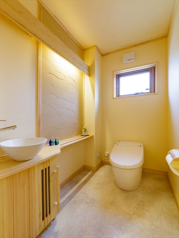 手洗いなども夢ハウスのオリジナルで、他にはない木のぬくもりを感じるトイレとなっております。