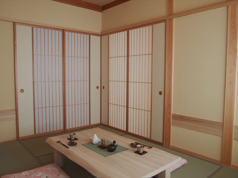 K様邸は障子や襖戸、仏壇扉、押入れ全て製作建具です。デザインもオリジナルです。