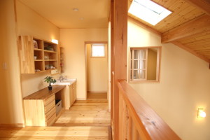 ・1階は家事導線や家族の導線を考え、水周りをぐるぐる回遊できるような間取りになっています。