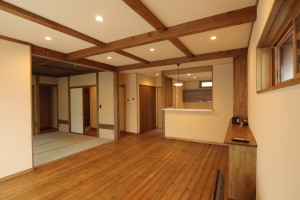 ヤマワリビングでは、リビングや子供室には「赤松」寝室には「赤松」や「桐」の床板をお勧めしています。どちらも厚みが3センチもあるので冬は暖かく、夏はさらっとして気持ち良く、まるで天然のエアコンのようです。