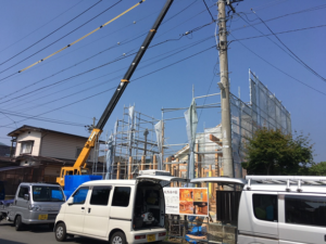 長野市吉田で、昨日今日と建前中です。 雨を避けて決めた建前日でしたが、梅雨なのに連日真夏日の建前になってしまいました。雨でも晴れ過ぎても大工さんは大変です。 やや大きめの収納たっぷりの開放感のあるお家となります。お楽しみに!