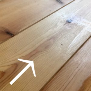 1.床全面を、普段はやってはいけない濡れた雑巾で雑巾がけします。この時、傷に水が染み込んで木が膨らんでよみがえってきます。勿論汚れも落ちます。
