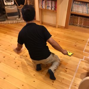 先ほど、傷の補修など作業をしたのでもう一度掃除機と、濡れ雑巾で雑巾がけをしましょう。