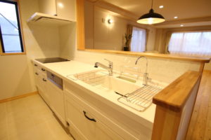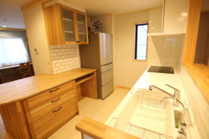 キッチンも、大工さん手作りの作業台と既製品がうまくマッチしてオンリーワンの素敵なキッチンになりました!