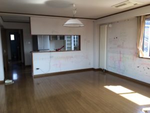 こちら解体前のリビングです^^壊す前に子供達皆で落書き♪こんなこと出来る機会なんて一生に一度かも!?笑