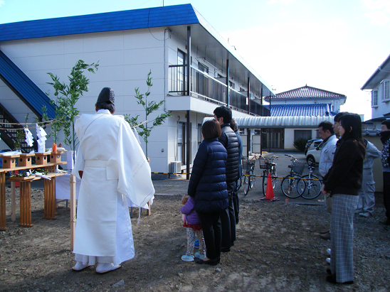 地鎮祭はご夫婦だけの場合もありますが、今日は8人+ヤマワも4人のにぎやかな地鎮祭となりました。