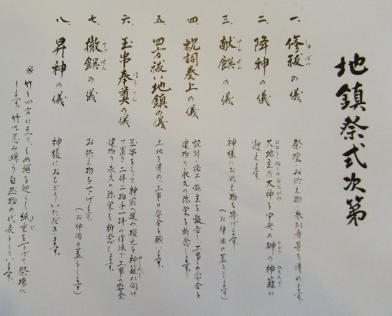 今回神主さんは地元の神主さんでしたが、式次第の筆文字があまりに素晴らしいので載せてみました。