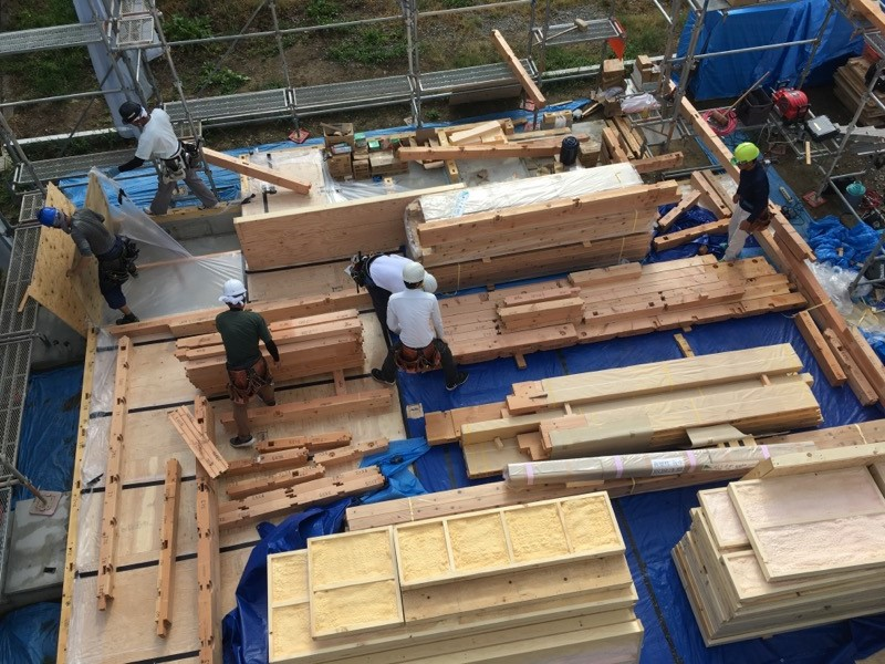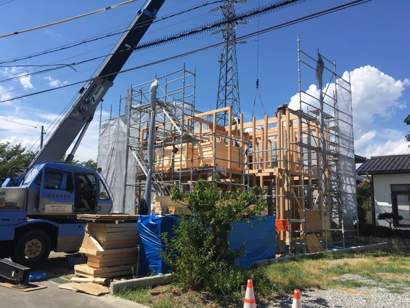 台風を避け、少し延期させていただいた建前です。 ようやく今週の日曜と月曜で建前になりました。 ずらして前より天気が悪くなることもありますが、今回はバッチリお天気です。 というより暑すぎでした。熱中症の心配もある中、無事に終わってホッとしました。