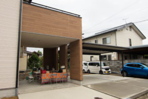 雨にぬれることなく荷物を降ろすことが出来ます。上は広いバルコニーになっており、家族で楽しく過ごせそう。