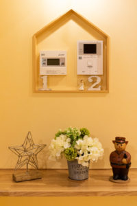 給湯器のリモコンと、インターホンをかわいくお洒落に収納できちゃいます。